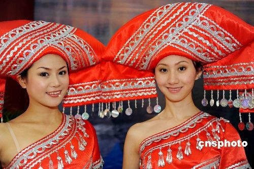 五月十五日,第五届中国(深圳)国际文化产业博览会开幕,广西壮族美女亮相文博会助阵。中新社发 陈文 摄
