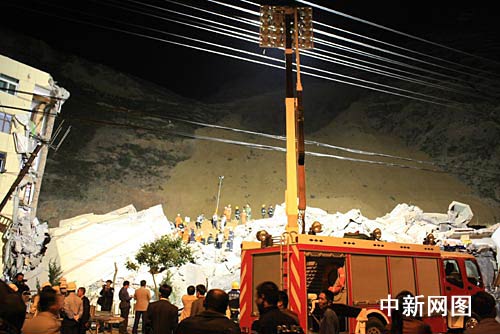 5月16日20时50分左右,甘肃省兰州市九州开发区发生一起山体滑坡,导致山下一栋居民住宅楼两个单元30户垮塌。22时05分,救援人员从废墟中抢救出一名头部受伤的居民,并立即送往医院。截至17日凌晨零时40分,救援工作仍在紧张进行。