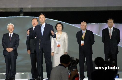5月16日晚,首届海峡论坛在厦门正式开幕。图为中国国民党副主席朱立伦现场致辞。中新社发 王东明 摄