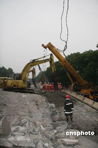湖南株洲高架桥坍塌事故搜救工作紧张进行(6)