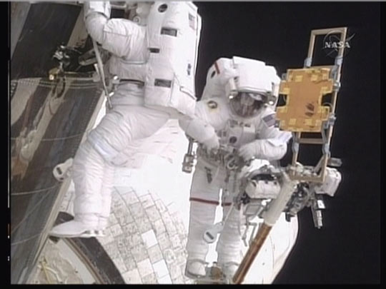 图:“亚特兰蒂斯”号宇航员太空行走维护哈勃望远镜