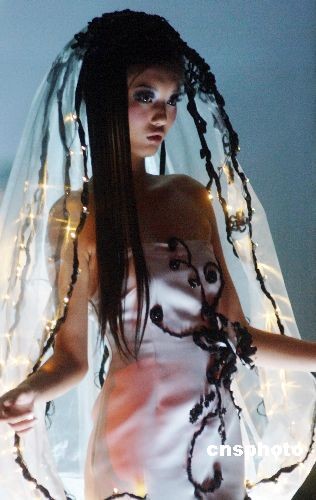 5月19日晚,女大学生模特福州展示时尚前卫的时装作品《曼珠沙华》。当晚,作为第十一届海交会系列活动之一,福州一所服装学院举行2009时装设计大赛优秀作品展示会。此次时装设计大赛以光线为主题,入围的22件作品反映出当代大学生蓬勃的激情与张扬的个性。 中新社发 刘可耕 摄