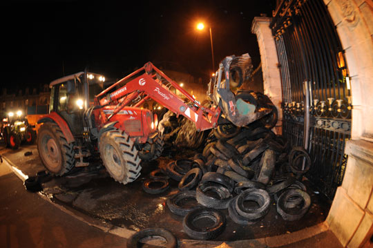 图:法国工人街头抗议奶制品价格下跌