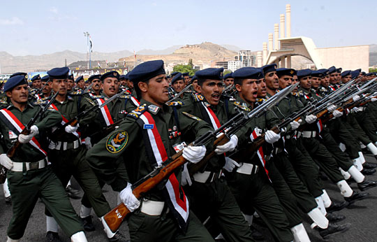5月21日,也门首都萨那举行隆重的阅兵式庆祝也门统一19周年。也门总统萨利赫出席该阅兵式。