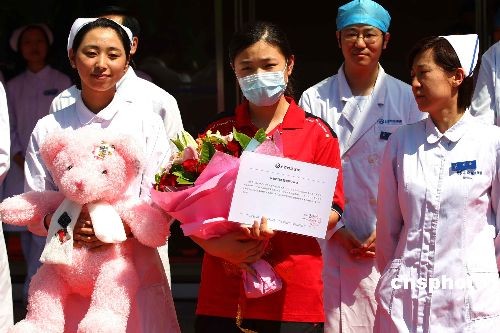 图:北京首位甲型H1N1流感患者康复出院 (3)