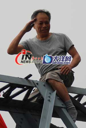 广州男子跳桥讨薪 被攀高老伯一把推下桥去(图)