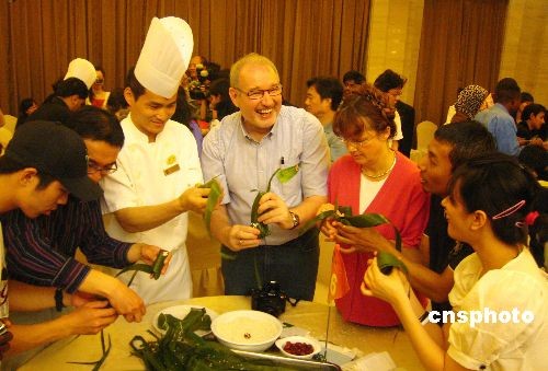 图:南京百余外国友人学包粽子体验中国端午节(3)