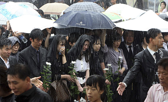 图:韩国民众冒雨悼念卢武铉(4)