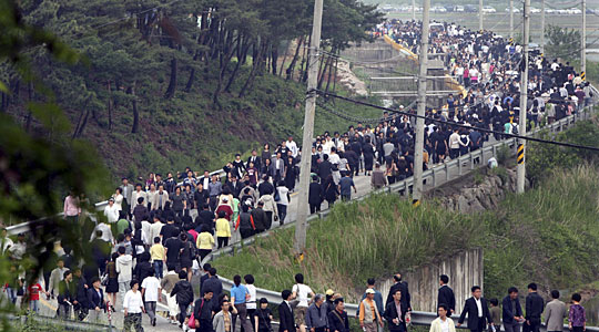 图:韩国民众冒雨悼念卢武铉(5)