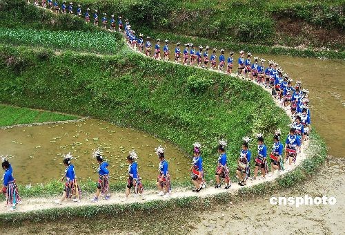 图:贵州丹寨千人齐跳锦鸡舞(4)