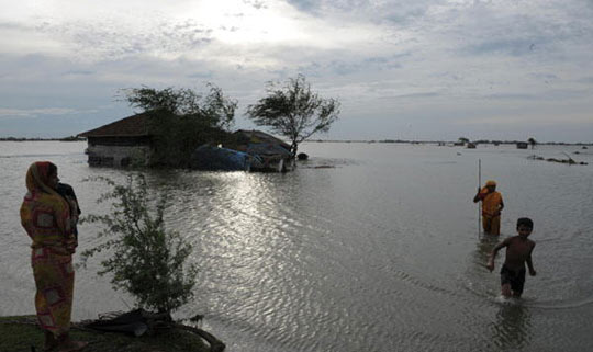 5月25日,热带风暴“艾拉”袭击了印度西孟加拉邦,造成至少11人死亡,25人受伤。图为26日,村民在被洪水袭击的村庄中行走。