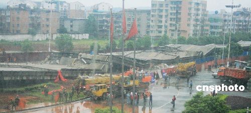 湖南株洲坍塌高架桥雨中成功爆破(4)
