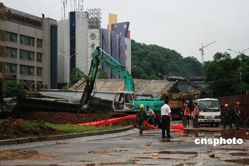 5月27日上午11点30分,本月17日发生大面积坍塌事故酿成严重人员死伤的湖南株洲红旗路高架桥在雨中爆破成功。中新社发 卓新民 摄