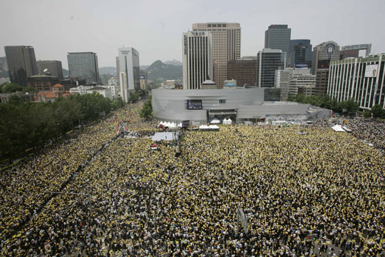 卢武铉国民葬举行 首尔广场挤满路祭民众 (3)——中新网