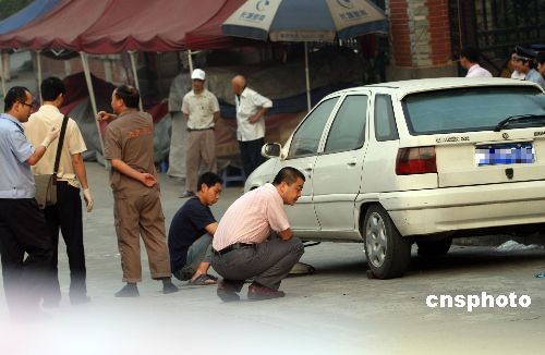 6月3日凌晨2时许,重庆主城江北区的某小区发生一起枪击案,致一名男子死亡。当地警方已在案发后封锁现场、介入调查。图为警方勘查取证。中新社发 郭晋嘉 摄