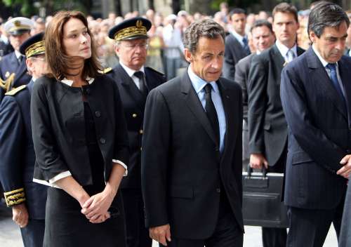 法国总统萨科齐与夫人布鲁尼,以及总理菲永当地时间3日在巴黎圣母院出席法航空难的悼念仪式。