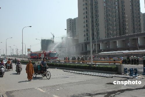 图为上午11时,事发现场交通恢复正常,消防官兵正在清理现场。肖龙联 摄