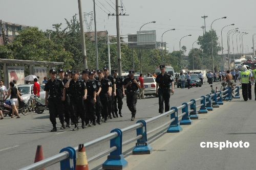 图为特警在事故现场维持秩序。中新社发 肖龙联 摄