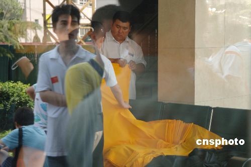 图为6月5日中午的灵堂布置现场,警卫把守,暂不开放。中新社发 李学仕 摄