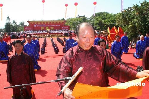 6月5日,盛大的关帝祭祀大典拉开了海峡两岸关帝文化旅游节的序幕。当天,第十八届海峡两岸关帝文化旅游节暨闽台水产品博览会”在福建东山开幕。