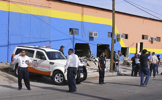 警察在墨西哥索诺拉州一所幼儿园的火灾现场调查。