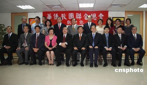 图为访问团成员与侨联总会负责人合影。中新社发 耿军 摄