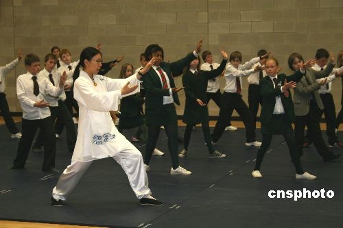 图为学生们在学习中国太极拳。中新社发 魏群 摄