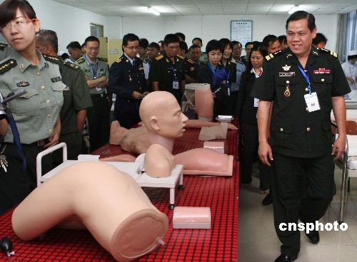 参加首届东盟与中日韩(10+3)武装部队非传统安全论坛的代表,6月9日上午参观解放军石家庄白求恩军医学院。来自东盟与中日韩等国33名代表参加此次论坛,本届为期3天的论坛旨在加强对非传统安全问题研究、增进互信、扩大共识、促进东盟与中日韩武装部队共同应对非传统安全威胁的挑战。