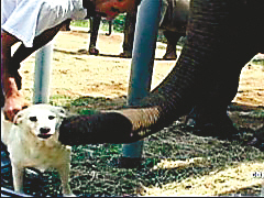 工作人员从来不知道它们的感情到底有多深,直到去年的一天,流浪狗贝拉的脊椎受了伤,它既无法走路,也无法摇动尾巴,而大象塔拉一直不离不弃地陪伴在贝拉的身边。工作人员见状后,立即将贝拉抱进了大象庇护所办公室楼上的“临时病房”进行治疗,结果他们发现在长达三个小时里,大象塔拉都寸步不离地守候在办公室外面,并不时发出叫声,呼唤自己的“狗友”。