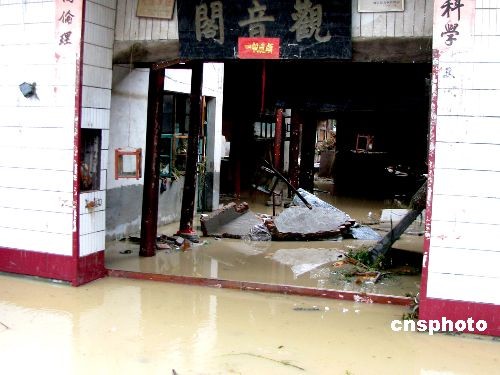 图为绥宁县红岩镇肖家湾村受灾的观音阁。中新社发 罗哲明 摄