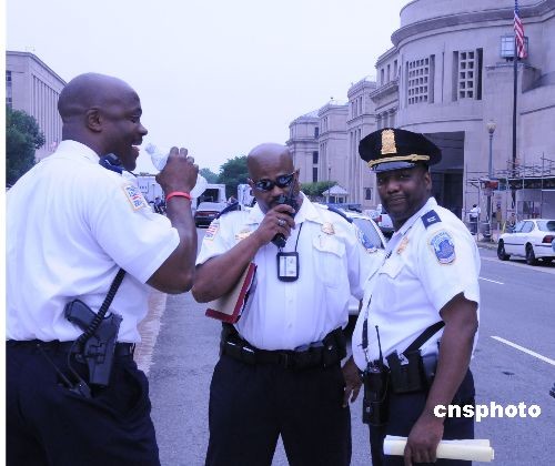 图为警察在发生枪击案的美国华盛顿纳粹大屠杀纪念馆(后方旗帜处)外的路口警戒。中新社发 吴庆才 摄