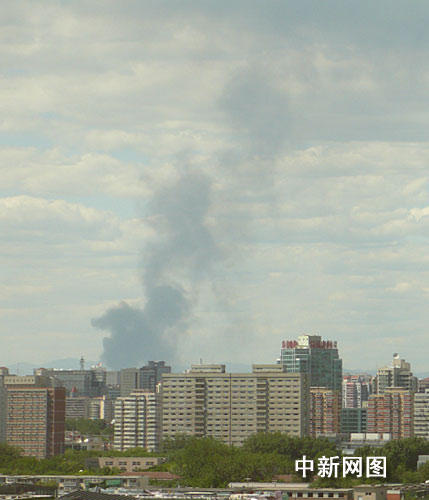 图为在长虹桥位置可以看到火灾引起的黑烟。