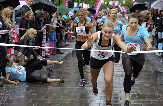 6月13日,一场高跟鞋100米赛跑在瑞典斯德哥尔摩举行。最终来自瑞典南部的埃琳·别雷率先冲过终点,夺得第一名。