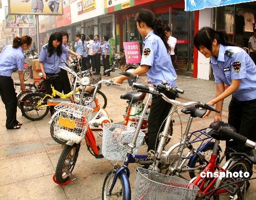 6月15日,女子城管队员在工作中。为充分发挥女性在城管执法工作中特有的耐心、细心和善于沟通等特点,着力打造城管行政执法新亮点,江苏连云港东海县在全市率先成立了城管行政执法大队女子中队。该女子中队目前共有10名队员,主要负责在中心城区主干道进行城管巡查,通过女性特有的亲和力和感染力,去教育劝导、纠正治理违反城市管理法律法规的行为,坚持文明执法、热情服务,化解执法过程中出现的矛盾,充分展示城管系统良好的精神风貌,塑造城管执法队伍崭新形象。