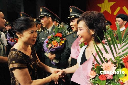 邱光华妻子与演员见面。中新社发 袁云 摄