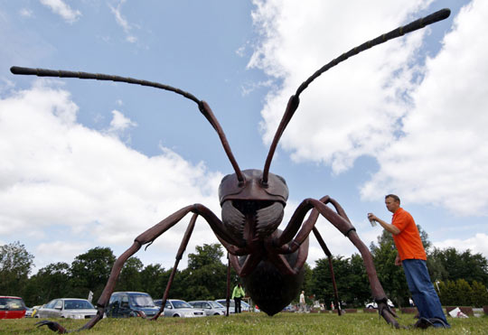 6月16日,一只按原型放大千余倍的欧洲红木蚂蚁模型被制作人员安装在德国东北部的一个农场内。它将是明年在赫林斯多夫举办的“巨型昆虫展览会”上的第一件展品。