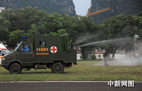 六月二十四日,历时一周、分三个阶段开展的中国和新加坡“合作-二00九”安保联合训练,在广州军区某综合训练基地圆满落幕。中新双方当天在完成实兵综合演练后举行结训仪式,双方观摩团团长共同检阅中新参训分队,并向双方各十名优秀参训官兵颁发奖章和证书。中新社记者 孙自法/摄