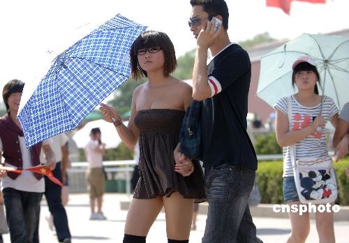 6月24日,北京市最高气温达到37℃,民众出行纷纷撑伞遮阳。当日,北京、天津、河北、河南、山东、山西、陕西、江苏、安徽、湖北、宁夏、新疆、内蒙古等十三省区遭受高温热浪席卷,局地最高气温可达四十摄氏度。中央气象台已拉响高温橙色警报。中新社发 邹宪 摄