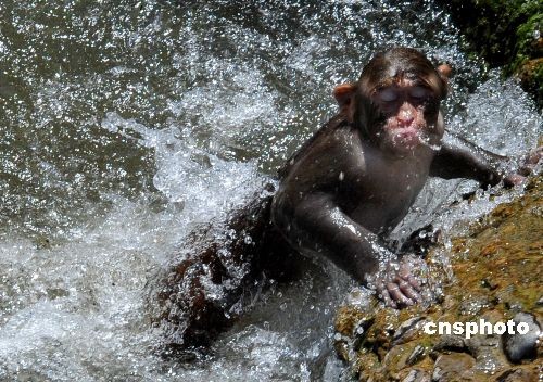 趣图:河南洛阳高温 猴子“跳水”解暑(3)