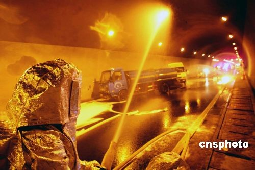6月25日,湖北宜昌市隧道灭火救援实战演练在沪蓉西高速公路女娘山隧道举行。来自宜昌市消防支队的21台消防车、100多名官兵及交警、路政、医疗、安监等部门联合参加演练。沪蓉西高速公路是国家“7918”高速公路网上海至成都公路的重要组成部分,是目前全国建设难度最大的高速公路项目之一。