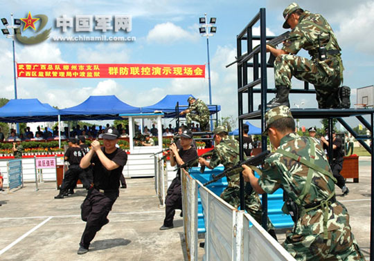 武警柳州支队和看押、看守目标单位双方决心将以这次联合演练活动为契机,进一步搞好“三共”活动的成果转化,在形式上、内容上确保“三共”活动扎实有效,努力探索“三共”活动的新途径、新经验,确保执勤目标绝对安全。 钱金柱摄