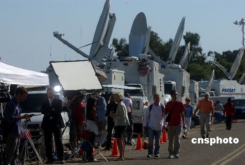 图为2005年6月迈克尔杰克逊最后离开“梦幻庄园”时,媒体记者和粉丝们云集门前。中新社发 贾国荣 摄