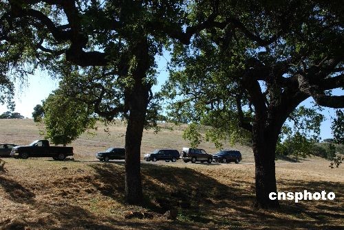 图为2005年6月迈克尔杰克逊最后离开“梦幻庄园”时的车队。中新社发 贾国荣 摄