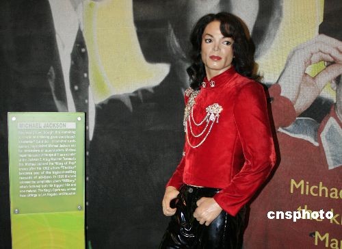 当地时间6月25日,“流行天王”美国著名歌星迈克尔·杰克逊因心脏病发作在洛杉矶一家医院病逝,终年五十岁。图为2008年6月12日在美国纽约蜡像馆,迈克尔·杰克逊(MICHAEL JACKSON)的全身蜡像。中新社发 金立冬 摄