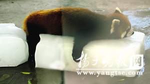 相比起大象,大小熊猫就显得慵懒许多,刚来南京不久的3只奥运熊猫朵朵、翠翠和朗朗,睡在室温26摄氏度的中央空调房间里。而小熊猫“维尼”房间内虽没有中央空调,却趴在饲养员专门为它准备的冰块床上,也很让人羡慕。