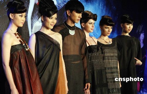 6月27日晚,北京举行了一场“夏有莨风”外交官时尚沙龙活动。活动旨在展示中国生活艺术和时尚文化,使世界各国在华外交官对古老的中国、多彩的中国和现代的中国有更多更深入的了解。图为模特情景式展示用传统生态面料莨绸设计的新款时装。中新社发 钱兴强 摄