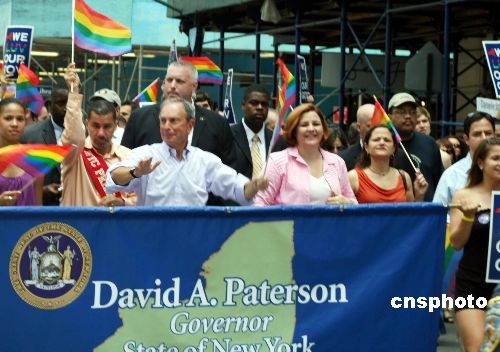 纽约州长帕特森(左二)和纽约市长布隆伯格(左三)也参加了游行活动。