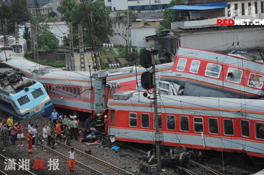 相关人员在事故现场进行抢救。 潇湘晨报记者朱辉峰 摄