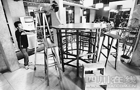 四川南充市顺庆城区一家餐馆推出最高餐桌,食客就餐和服务员上菜,都要“爬梯子”。