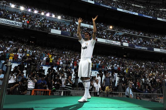 巴西球星卡卡披8号战袍亮相伯纳乌球场(2)